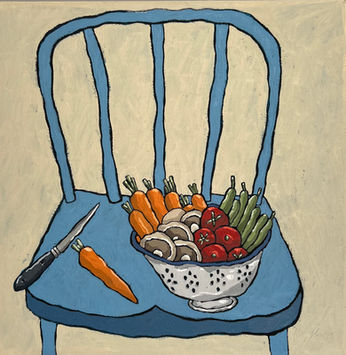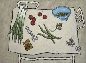 Jane Hooper says “I have always enjoyed drawing from an early age, then I discovered oil paints and have never looked back. I have a real passion for simple, uncomplicated still life, choosing vegetables and flowers from the garden as my main subject matter. I often pair them with kitchen scales or other domestic objects. Colour is important too. I am very drawn to a subtle palette and my aim is to make the colour I choose work in harmony.”