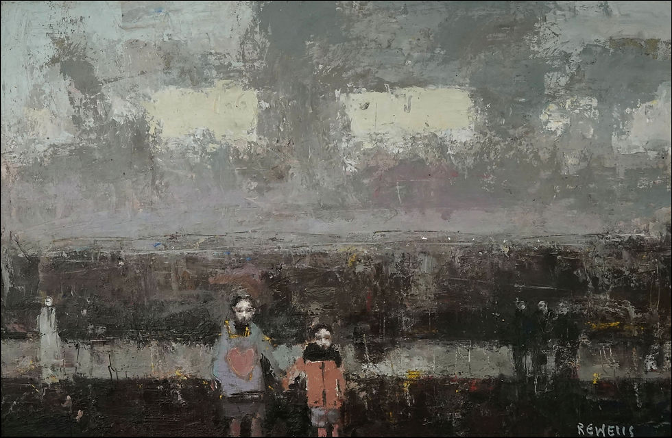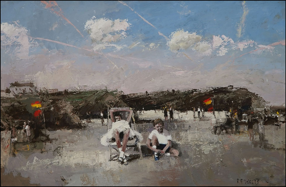 Siblings Camber Sands by Robert E. Wells RBA NEAC