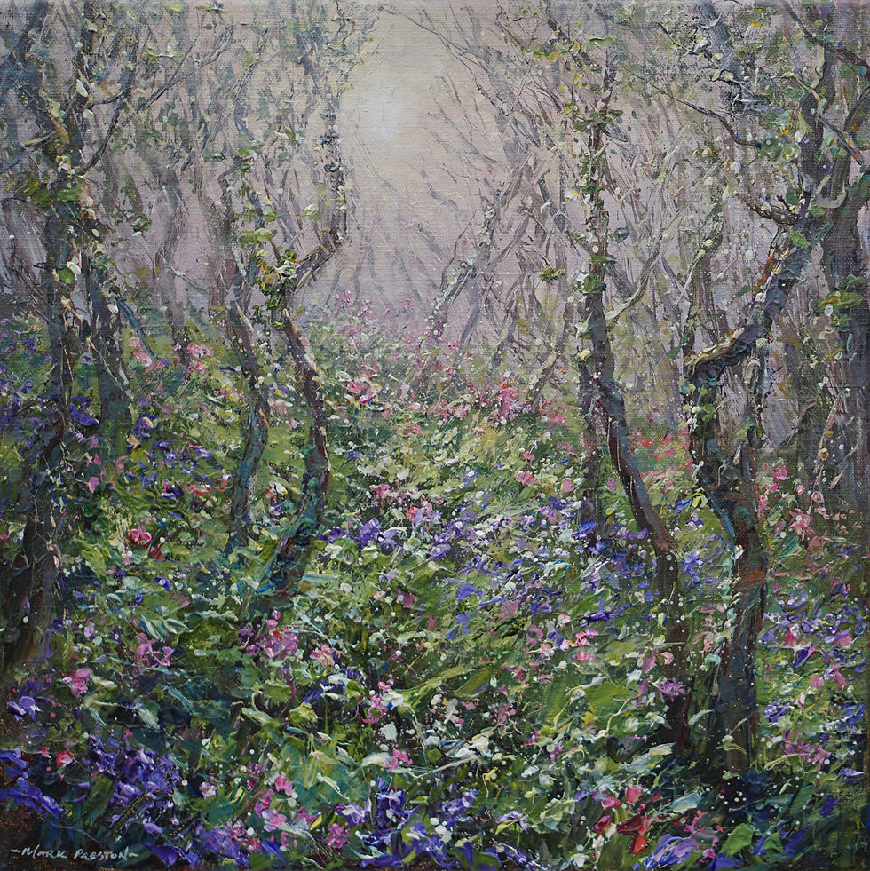 Mark Preston paints in acrylics and works mainly in situ with relatively little time spent in the studio. “For me, experiencing the landscape and elements directly is essential to attempt to capture them in paint. I just need to be there to respond to the situation and the spirit of the landscape” This direct approach of working from nature, allows him time to observe and experience the subtle changes in colour, light and atmosphere, enabling him to build up an understanding and awareness of the places he paints.